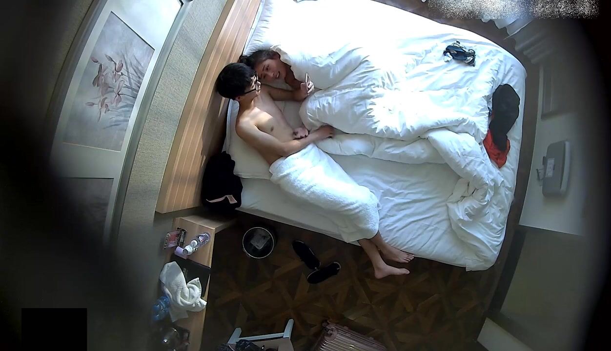 [国产]宾馆上帝视角偸拍有点像姐弟恋的热恋情侣,皮肤光滑白嫩骚女友边看A片边被干,还给毒龙